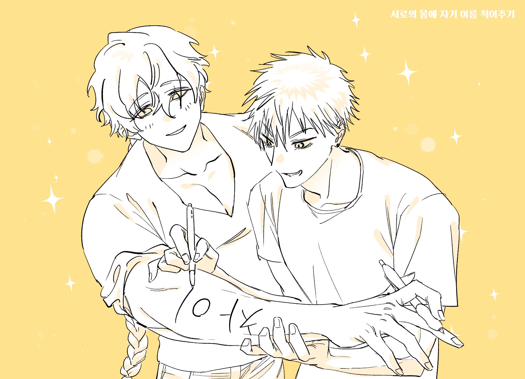 얼마 전에는 경사스럽게도 1주년~~~~ 글고 트이터에서 본 서로의 몸에 자기 이름 적어주기 해시도 넘 귀여워서 낙서